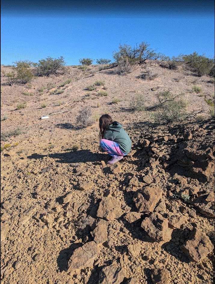 We set out with simple goals: traces of old stories. On one hike, we followed a wash and found fossils of shells and oysters, reminders that this dry desert was once the floor of a living sea. On another day, we traced a black seam of coal, found fossilized wood, and read the rock layers like a slow history book. Most recently, we went looking for a fire ring and instead found pottery sherds and half of a musket ball. Each piece carried human stories: people who shaped clay, tended fires, hunted, worked, and survived on this same ground.